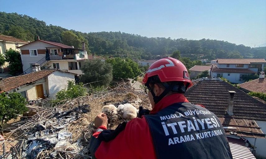Muğla'nın Ula ilçesi Akçapınar Mahallesi'nde, leylek yavrularının yuvalarında ayaklarına ip dolandığı bilgisi, itfaiye ekiplerini harekete geçirdi. Muğla Büyükşehir Belediyesi Ula İtfaiye Grup Amirliği ekipleri, bölgeye intikal ederek, leylek yavrularını kurtarmak için çalışmalar başlattı.