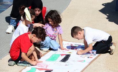 Muğla'nın Fethiye ilçesinde, İsrail'in Gazze'ye yönelik saldırılarını protesto etmek ve Gazzeli çocuklara destek amacıyla "Filistinli çocuklar için çiz" etkinliği düzenlendi. Çocuklar yerlere konulan tuvale, Gazze'ye destek mesajları resmetti.