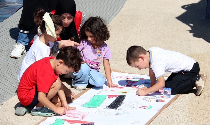 Yetim Vakfı Muğla Temsilciliği'nin öncülüğünde Şehit Fethi Bey Parkı'nda gerçekleşen organizasyona, birçok sivil toplum kuruluşu ve öğrenciler katıldı. Çocuklar, yere serilen tuvallere Gazze'ye destek mesajları çizerek, duygularını ifade etti.