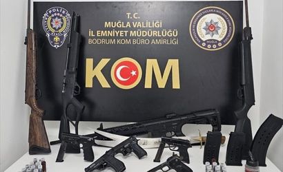 Muğla'da silah kaçakçılarına yönelik operasyonda gözaltına alınan 13 şüpheliden 4'ü tutuklandı. Farklı ilçelerde belirlenen 13 adreste yapılan aramalarda 3 ruhsatsız, 2 kurusıkıdan bozma ve 5 kurusıkı tabanca, bir tabanca gövdesi, 12 ruhsatsız av tüfeği, 2 havalı tüfek, 212 tabanca fişeği, 283 av tüfeği kartuşu, bir kılıç, bir işlemeli çelik bıçak ve 4 şarjör ele geçirildi.