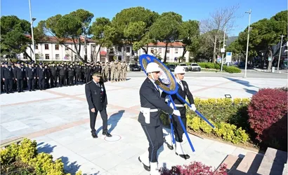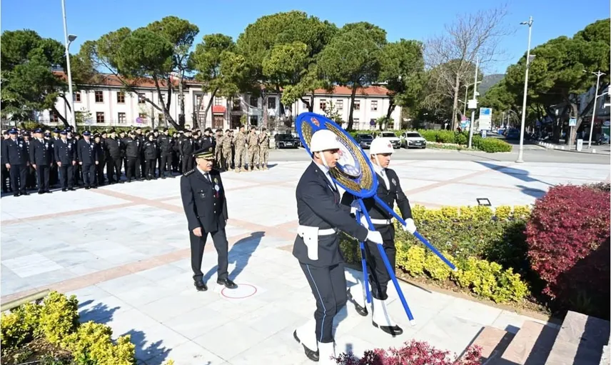 Törende, Muğla İl Emniyet Müdürü Süleyman Karadeniz, emniyet müdür yardımcıları, şube müdürleri ve çeşitli birimlerden çok sayıda polis memuru hazır bulundu. Süleyman Karadeniz tarafından Atatürk Anıtı’na çelenk sunulmasının ardından, aziz şehitlerimiz anısına bir dakikalık saygı duruşu yapıldı ve ardından İstiklal Marşı okundu.
