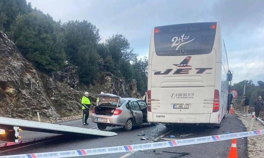 Olayın detaylarına göre, Semir K. (57) idaresindeki 31 ANN 237 plakalı Jet Turizm firmasına ait yolcu otobüsü, Şükrü Öncü (64) yönetimindeki 48 PP 325 plakalı otomobille çarpıştı. İhbar üzerine kaza yerine sağlık, itfaiye ve jandarma ekipleri sevk edildi.
