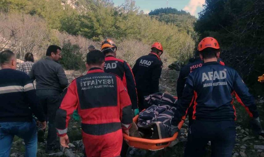 Muğla'nın Menteşe ilçesi kırsal Sarnıç Mahallesi'nde hayvan otlatırken kayalık alanda dengesini kaybeden 72 yaşındaki Duran Orhan, düştüğü esnada ayağını kırdı.