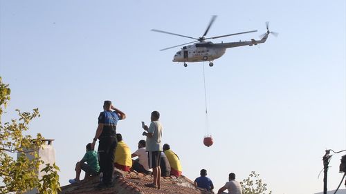 Muğla'nın Milas ilçesinde çıkan orman yangınına hem havadan hem de karadan müdahale edilmektedir.