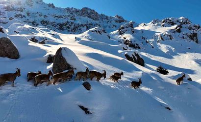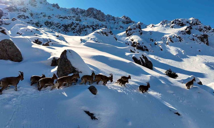 Doğa Koruma Birliği (IUCN) tarafından yayımlanan Nesli Tükenme Tehlikesi Altında Olan Türlerin Kırmızı Listesinde yer alan yaban keçileri, karla kaplı dağ eteklerinde adeta belgesel tadında kareler oluşturdu. Türün avlanması yasak olmasına karşın görüntüler, koruma çalışmalarının ve alan izlemenin önemini bir kez daha gözler önüne serdi.