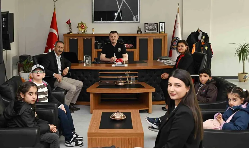 Munzur İlkokulu müdürü, öğretmenleri ve özel öğrenciler, İl Emniyet Müdürü Zafer Baybaba'yı makamında ziyaret ederek Polis Haftası’nı kutladı.