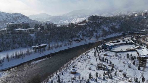Munzur Nehri Kıyısında Karla Kaplı Tunceli Havadan Görüntülendi