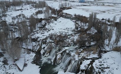 Van'da etkili olan yağışların ardından Muradiye Şelalesi'nin çevresi karla kaplandı.