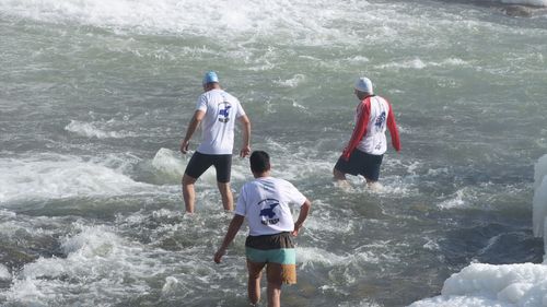 Vangölü Aktivistleri Derneği üyeleri, kısmen donan Muradiye Şelalesi'nde soğuk havaya rağmen yüzme etkinliği düzenledi.