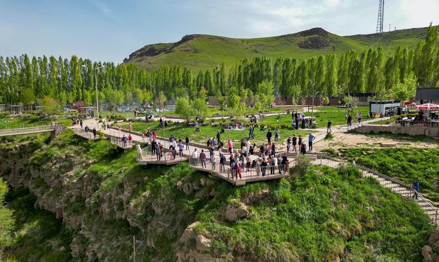 Van'da son günlerde etkili olan yağışlarla daha coşkulu akan Muradiye Şelalesi'nde hafta sonu yoğunluğu yaşandı.