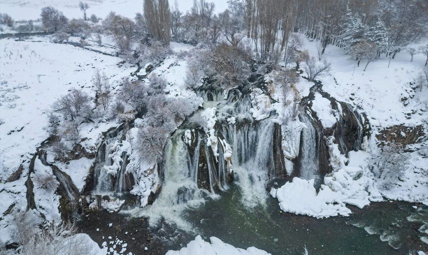 Van'da son günlerde etkili olan yağışların ardından, Muradiye Şelalesi'nin çevresi karla kaplandı. Yaklaşık 20 metre yüksekten akan şelale, her mevsim olduğu gibi bu dönemde de ziyaretçilerin ilgi odağı haline geldi.