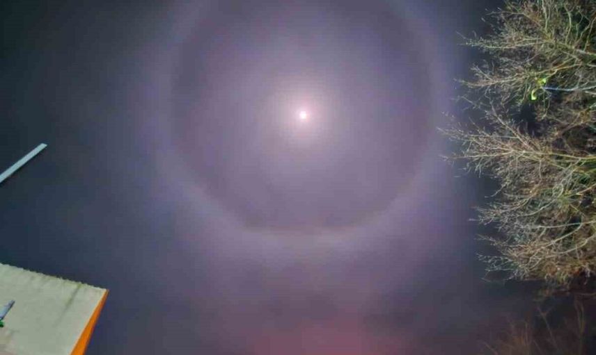 Tekirdağ'ın Muratlı ilçesinde akşam saatlerinde gökyüzüne bakan vatandaşlar, Ay'ın etrafında parlak ve tam dairesel bir halka ile karşılaştı. Bu görsel şölen, astronomide 22° Ay Halesi olarak adlandırılıyor.