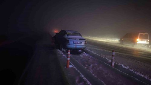 Muş-Bitlis Karayolu'nda sis ve buzlanma nedeniyle otomobil refüje çarptı