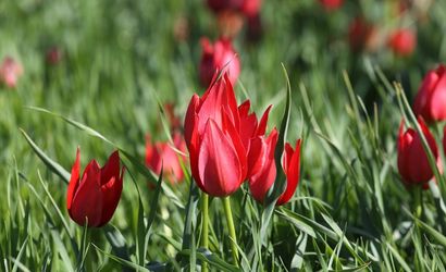 Muş'ta, ömrü ortalama 3 hafta olan ve 'Muş 1071' ismiyle tescillenen laleler, Muş Ovası'nda açmaya başladı. Tarım ve Orman Bakanlığı'na bağlı Bitkisel Üretim Genel Müdürlüğü tarafından tescillenen bu laleler, ovadaki arazileri adeta renklendirerek göz alıcı bir görüntü sundu.