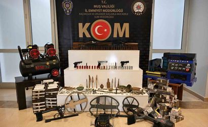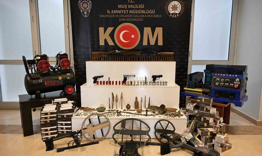 Muş İl Emniyet Müdürlüğü Kaçakçılık ve Organize Suçlarla Mücadele Şube Müdürlüğü (KOM) tarafından 17.12.2025 tarihinde il genelinde belirlenen 7 adrese eş zamanlı operasyon düzenlendi. Aramalar sonucunda çok sayıda silah, mühimmat ve tarihi eser niteliğinde obje ele geçirildi.