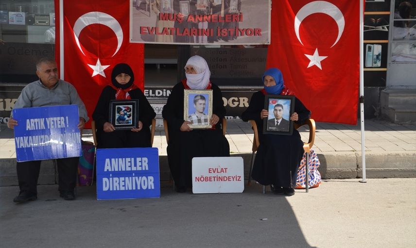 Muş'ta, çocuklarının terör örgütü PKK tarafından dağa götürüldüğünü düşünen aileler, DEM Parti'yi sorumlu tutarak partinin il başkanlığı binası önündeki eylemlerine devam ediyor.