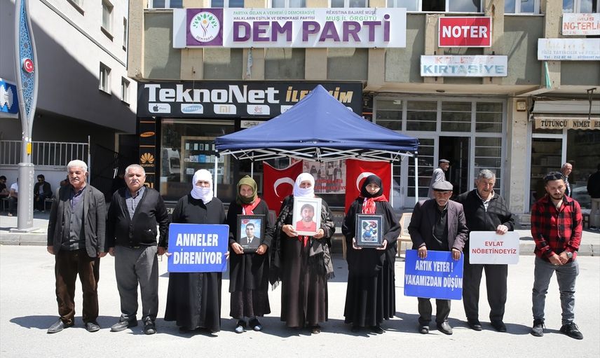 Muş'ta, DEM Parti İl Başkanlığı binası önünde bir araya gelen aileler, terör örgütü PKK tarafından kaçırılan çocukları için ''teslim olun'' çağrısında bulundu. Evlatlarına kavuşma umuduyla bir araya gelen aileler, eylemlerini sürdürmeye devam ediyor.