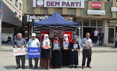Eyleme katılan aileler, "Anneler direniyor", "Evlat nöbetindeyiz" ve "Artık yeter yakamızdan düşün" yazılı pankartlar taşıdılar. Ailelerden Alaattin Koçhan, 10 yıldır oğlundan haber alamadığını belirterek, "Oğluma kavuşmak istiyorum. Terörsüz Türkiye sürecini başlatan Cumhurbaşkanı'na ve emeği geçenlere teşekkür ediyorum. Bir an önce bu sorun çözülsün, evlatlarımızın evlerine dönmesini dört gözle bekliyoruz." dedi.