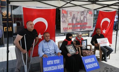 Anne Şahinaz Özcan, "DEM Parti ve PKK çocuğumu aldı götürdü. Çocuğum DEM Parti ve PKK'dan istiyorum. Oğlum gelene kadar buradayım," diyerek duygularını dile getirdi. Bedri Korkmaz ise annelerin eylemine her zaman destek vereceklerini ifade etti.
