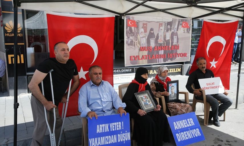 "Evlat nöbetindeyiz", "Anneler direniyor" ve "Artık yeter yakamızdan düşün" gibi yazılı pankartlar açarak seslerini duyuran aileler, çocuklarının fotoğraflarını taşıyarak, onların geri dönmesi için çağrılarda bulunuyor. Bu eylemlere Muş Engelliler Derneği Başkanı Bedri Korkmaz ve beraberindekiler de destek veriyor.