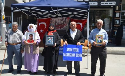 Muş'ta çocukları terör örgütü PKK tarafından kaçırılan aileler, DEM Parti İl Başkanlığı binası önündeki eylemlerine devam etti.