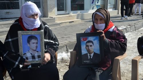 Muş'ta PKK tarafından kaçırılan çocukları için aileler, DEM Parti binası önünde eylemlerine devam ediyor.