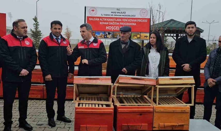 Muş Tarım ve Orman İl Müdürlüğü tarafından yürütülen 'Altın Kanatlara Yeni Kovan' projesi kapsamında, arıcılığın geliştirilmesi ve üreticilerin desteklenmesi amaçlı bir dağıtım programı gerçekleştirildi. Proje kapsamında kent genelinde arıcılıkla uğraşan 100 üreticiye toplam 1.000 adet arı kovanı teslim edildi.