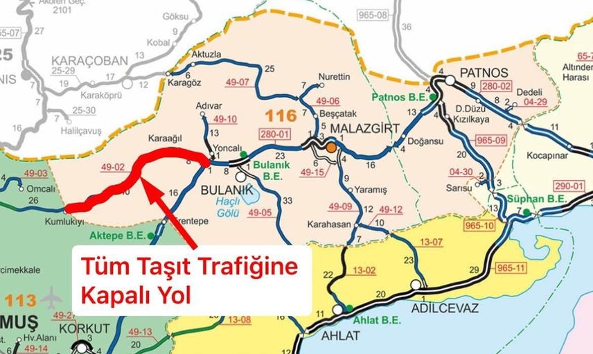 Muş’ta Bulanık-Kumlukıyı karayolu geçici olarak ulaşıma kapatıldı