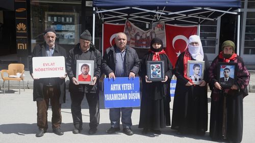 Muş'ta çocukları PKK tarafından kaçırılan aileler, DEM Parti binası önünde evlatları için eylemlerine sürdürüyor.