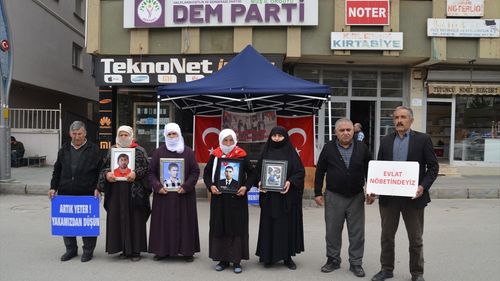 Muş'ta, terör örgütü PKK tarafından çocukları kaçırılan aileler, DEM Parti İl Başkanlığı binası önündeki eylemlerine devam ediyor. Her hafta çarşamba günü bir araya gelen aileler, çocuklarına teslim olmaları için çağrıda bulunuyorlar. Ellerinde "Anneler direniyor", "Evlat nöbetindeyiz" ve "Artık yeter, yakamızdan…