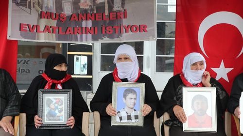 Muş'ta çocukları PKK tarafından kaçırılan aileler, DEM Parti İl Başkanlığı önünde her çarşamba yaptıkları eylemi sürdürerek evlatlarına teslim olma çağrısı yaptı.