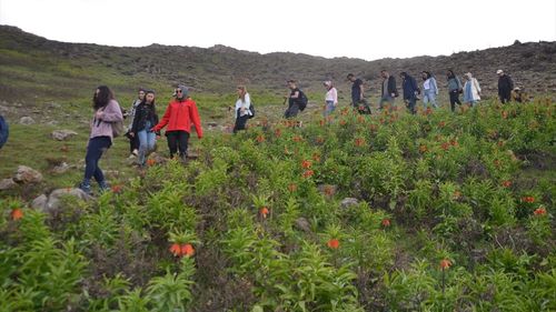 Muş'un Çizmeburun mevkiinde doğaseverler, ters laleleri görüntülemek için yürüyüş gerçekleştirdi.