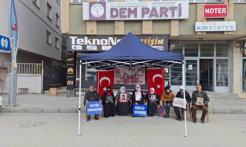 Muş'ta DEM Parti İl Başkanlığı önünde süren evlat nöbeti 222'nci haftasına girdi. Her hafta çarşamba günü parti binası önünde bir araya gelen aileler, çocuklarına bir kez daha teslim olmaları çağrısını yineledi.