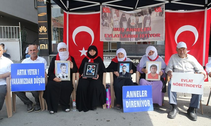 Muş'ta çocukları terör örgütü PKK tarafından kaçırılan aileler, DEM Parti İl Başkanlığı binası önündeki eylemlerine devam etti.