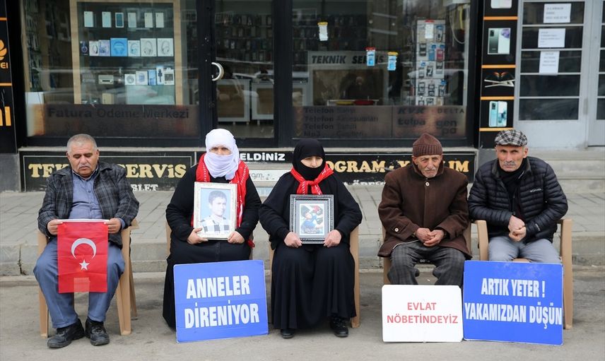 Muş'ta, terör örgütü PKK tarafından kaçırılan çocuklarının geri dönmesi için mücadele eden aileler, DEM Parti İl Başkanlığı binası önündeki eylemlerine devam ediyor. Her hafta çarşamba günü düzenledikleri eylemlerde, çocuklarına kavuşma ümidi taşımakta ve PKK'ya karşı tepkilerini dile getirmekte.