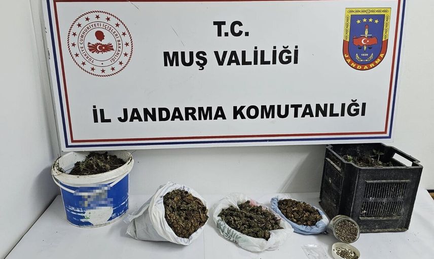 MUŞ’TA JANDARMA EKİPLERİNCE BİR ADRESE DÜZENLENEN OPERASYONDA 1 KİLO 350 GRAM KUBAR ESRAR, 400 GRAM KENEVİR TOHUMU VE 8 KÖK KENEVİR BİTKİSİ ELE GEÇİRİLDİ; OLAYLA İLGİLİ BİR ŞÜPHELİ GÖZALTINA ALINDI.