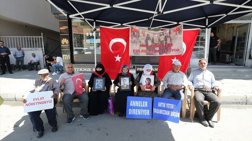 Muş'ta çocukları PKK tarafından kaçırılan aileler, DEM Parti İl Başkanlığı önündeki haftalık eylemlerini sürdürerek çocuklarının teslim olmasını talep etti.