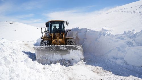 Muş'ta kar ve tipi nedeniyle kapanan yollar için yürütülen karla mücadele çalışmaları sürüyor.