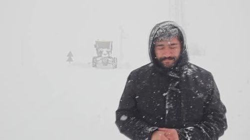 Muş'ta yoğun kar ve fırtına nedeniyle 238 köy yolu ulaşıma kapandı; Yukarıyongalı'da gazeteciler, görüşün kaybolduğu bölgede iş makinesine yürüyerek yol tarifi yaptı.