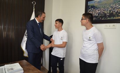 Muş'taki özel bir okulda eğitim gören bu iki öğrenci, LGS kapsamındaki merkezi sınavda tüm sorulara doğru yanıt vererek 500 puan almayı başardı. İl Milli Eğitim Müdürü Enver Kıvanç, öğrencilerle eğitim gördükleri okulda bir araya gelerek tebrik etti. Kıvanç, LGS sınavı sonuçlarının Milli Eğitim Bakanlığı tarafından açıklandığını hatırlattı ve Muş'tan iki öğrencinin tam puan alarak Türkiye birincileri arasında yer aldığını belirtti.