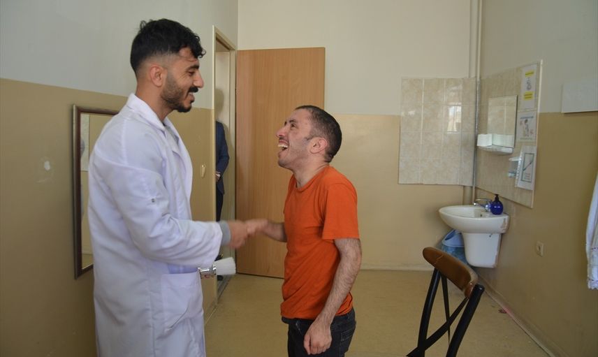 Muş'ta bir okulda eğitim alan özel gereksinimli öğrencilerin bayram tıraşını öğretmenleri yaptı.