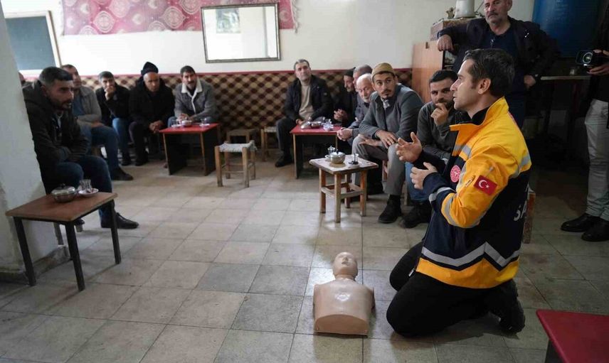 Muş İl Sağlık Müdürlüğü bünyesindeki 112 Acil Sağlık Hizmetleri Başhekimliği ekipleri, 'Köylere ilk yardım farkındalık eğitimi' projesi kapsamında kent merkezine uzak köylerde temel ilk yardım eğitimi yürütüyor. Zorlu coğrafi koşullar nedeniyle ambulans ekiplerinin erişiminin zaman alabildiği yerleşimlerde başlatılan çalışma, vatandaşların acil durumlarda müdahale edebilme becerisini güçlendirmeyi hedefliyor.