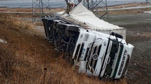 Muş'ta tır virajı alamayıp şarampole yuvarlandı