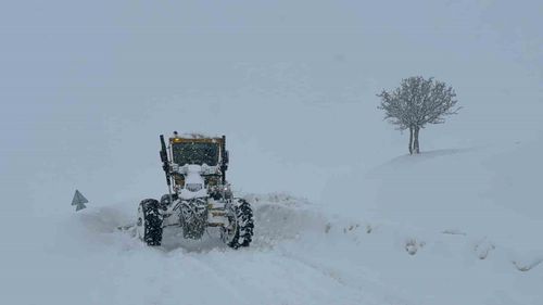 Muş'ta yoğun kar ve tipi nedeniyle 55 köy yolu ulaşıma kapandı; Muş İl Özel İdaresi iş makineleriyle yolları açmak için aralıksız çalışıyor.