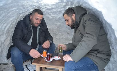 Müşteri Mustafa Eroğlu ise, "Burada iglu yapıldığını duydum ve geldim. İçinde oturup kahve içtim. Farklı bir mekan olmuş" ifadelerini kullandı.