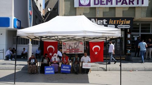 Muş'ta çocukları terör örgütü tarafından kaçırılan aileler, DEM Parti önünde eylemlerine sürdürüyor.