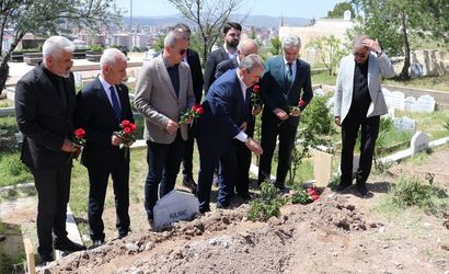 İlk olarak Yukarı Tekke Mezarlığı'nda Kulmaç'ın mezarını ziyaret eden Destici, buraya karanfil bırakarak dua etti.