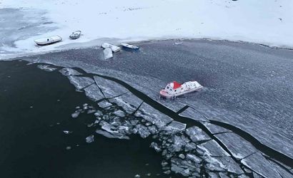 BİTLİS’İN AHLAT İLÇESİNDE ETKİLİ OLAN DONDURUCU SOĞUKLAR, NAZİK GÖLÜ’NÜN YÜZEYİNİN KISMEN DONMASINA NEDEN OLDU. SOĞUK HAVA NEDENİYLE GÖL ÜZERİNDEKİ BALIKÇI TEKNELERİ BUZLARIN ARASINDA KALARAK DİKKAT ÇEKEN GÖRÜNTÜLER OLUŞTURDU.