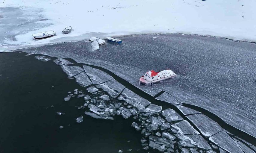 Yaklaşık 40 kilometrekarelik alana sahip olan Nazik Gölü'nün bazı bölümlerinde oluşan buz tabakaları, kıyıdaki balıkçı teknelerinin donan göl yüzeyi içinde kalmasına yol açtı. Ortaya çıkan kartpostallık görüntüler havadan görüntülendi ve bölgedeki soğuk havanın etkisini belgeledi.