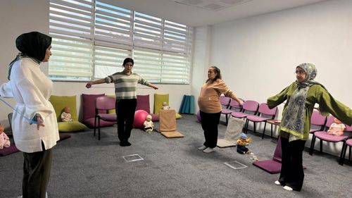Nazilli Cumhuriyet Sağlıklı Hayat Merkezi'ndeki Gebe Okulu'nda anne adaylarına gebelik, doğum ve yenidoğan bakımı konularında kapsamlı eğitimler verildi; katılım belgeleri dağıtıldı.
